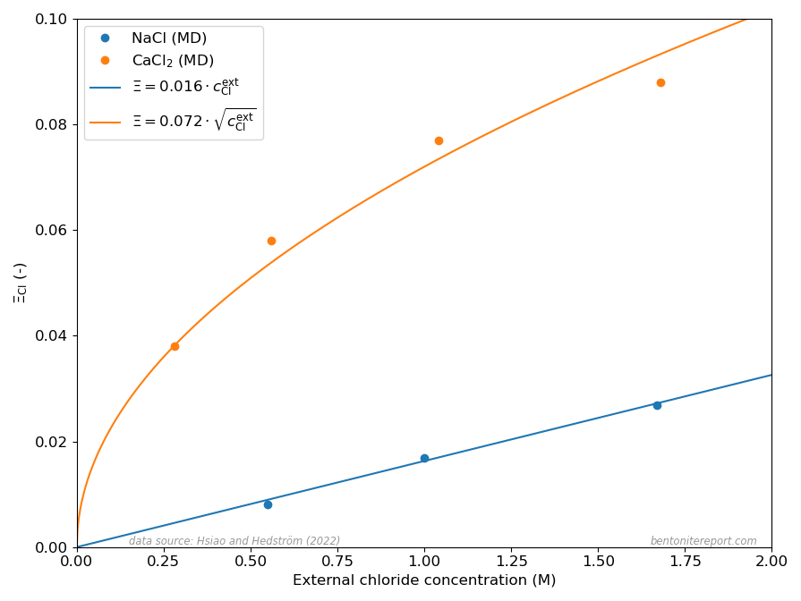 There are both theoretical and empirical arguments for that different anions may have different equilibrium concentrations (for otherwise similar conditions). In the assessment it has therefore been important to stick to one and the same type of equilibrating anion. Moreover, chloride is certainly the anion that has been studied the most within bentonite research, with iodide as its closest “competitor”.